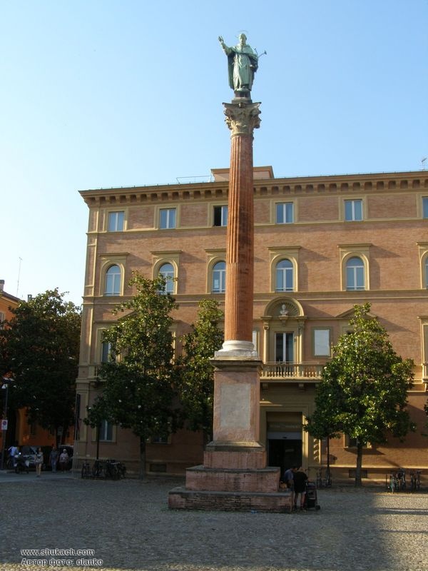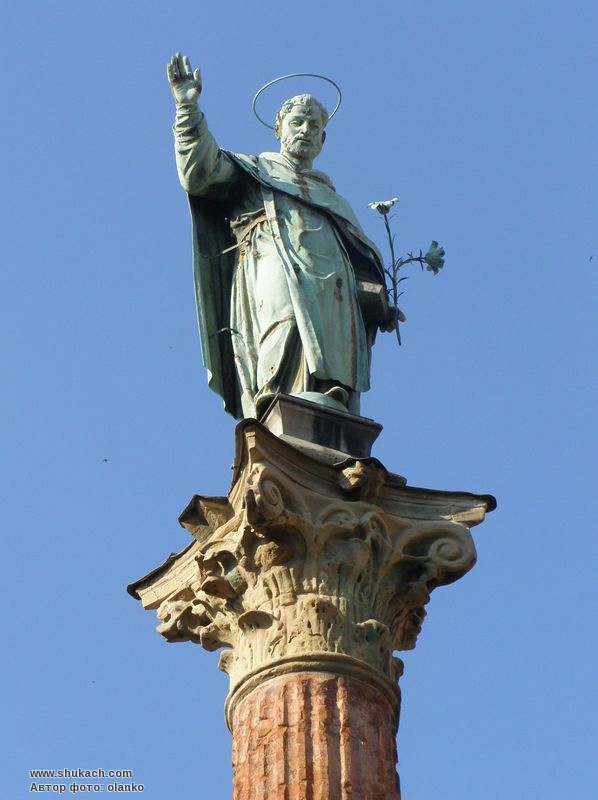Бронзова статуя Святого Домініка встановлена на високій колоні у 1623 році. Статуя була виготовлена у Мілані. Автор невідомий. На постаменті – плита з текстом: ««Великому Богу Массімо. Ця колона, яку отці цього монастиря поставили своєму святому отцю Доменіко в рік здоров’я 1623, у руїнах, відновлена в 1727 році».