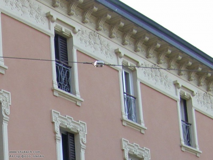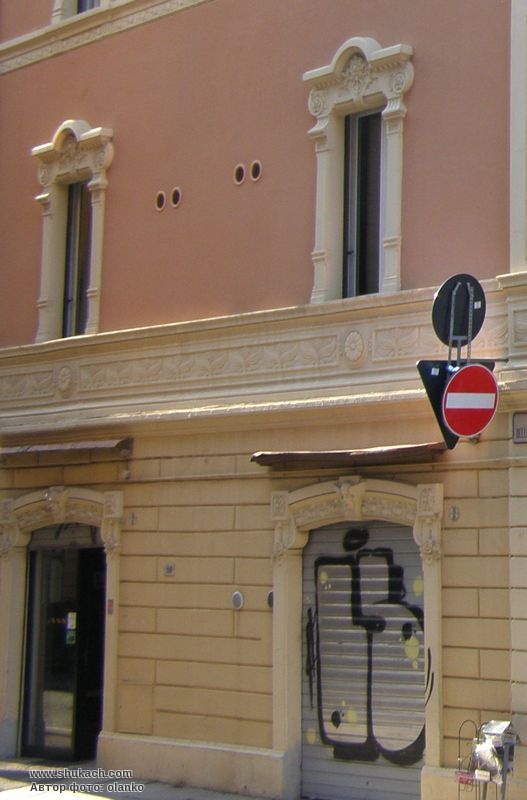 Чотириповерховий прибутковий будинок на розі віа делле Товальї і пьяцца Трибунале. Його фасади прикрашені широкими смугами з рельєфним рослинним орнаментом. Перший рустований поверх відданий під крамниці і офіси. Вікна мають кам’яне обрамлення з фігурними сандриками, різними для кожного поверху.