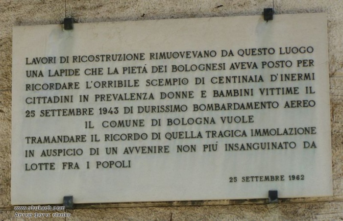 м. Болонья. Меморіальна дошка жертвам авіаційного бомбардування.