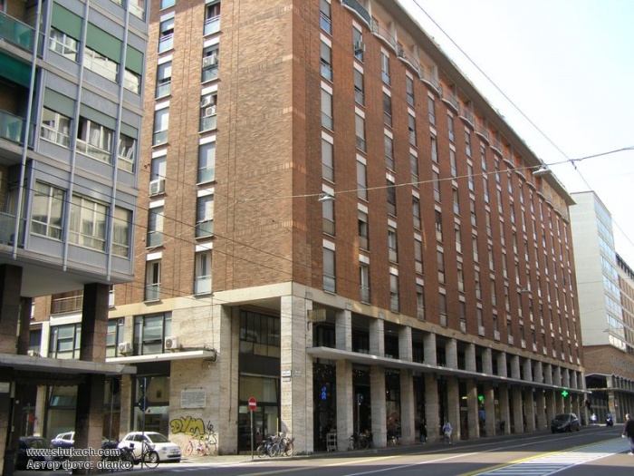 Раніше тут був встановлений камінь в пам'ять жертв авіаційного бомбардування 23 вересня 1943 року. В цей день в результаті нальоту авіації союзників (71 бомбардувальник) загинули 936 мирних громадян Болоньї. В зв’язку зі зведенням нового будинку пам’ятний знак був демонтований, а на стіні будинку 25 вересня 1962 року встановили дошку.