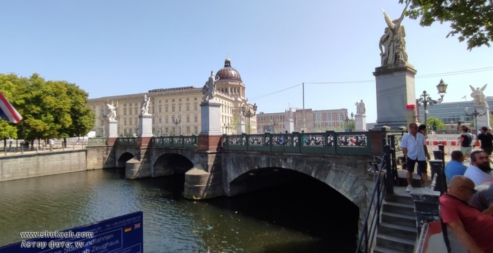 Замковий міст через Шпрее був побудований у 1821-1824 роках Карлом Фрідріхом Шинкелем. Монументальні фігури на триарковому мосту створили учні скульпторів Йоганна Готфріда Шадова та Крістіана Даніеля Рауха в 1842-1857 роках на честь визвольних воєн. Після Другої світової війни пошкоджений міст було відновлено, а в 1983-1984 роках знову встановлено перенесені фігури.
