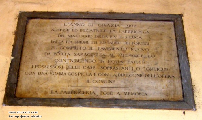 м. Болонья. Меморіальна дошка реставрації портику Сан-Лука.