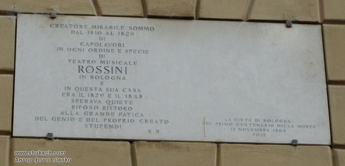 В цьому будинку з 1810 до 1829 року знаходився музичний театр всесвітньо відомого композитора Джоаккіно Россіні. З 1829 по 1848 рік він часто жив в цьому будинку. Дошка урочисто відкрита в 100-ту річницю з дня смерті Россіні – 13 листопада 1968 року.