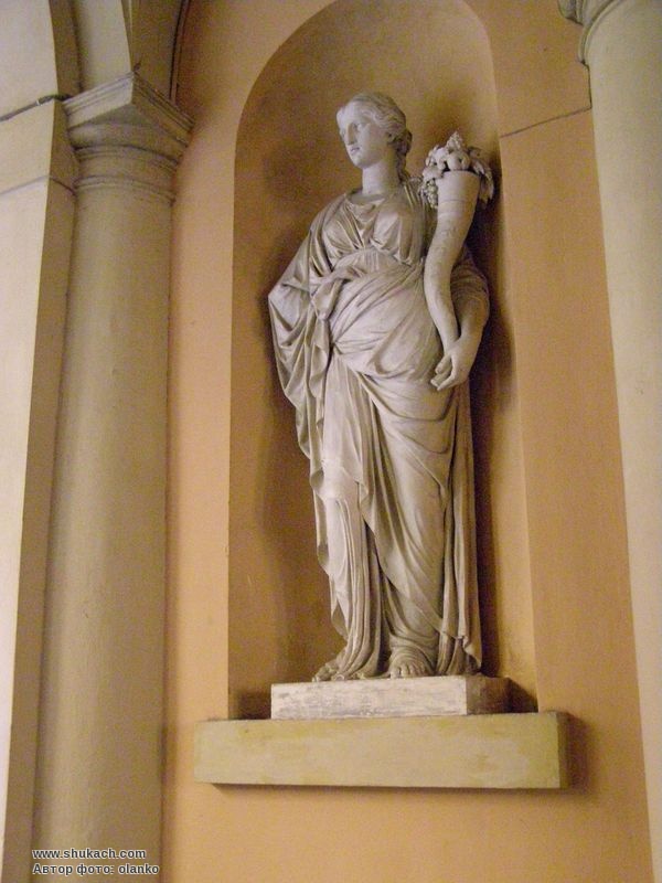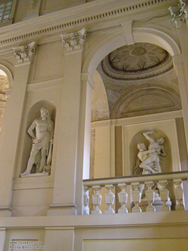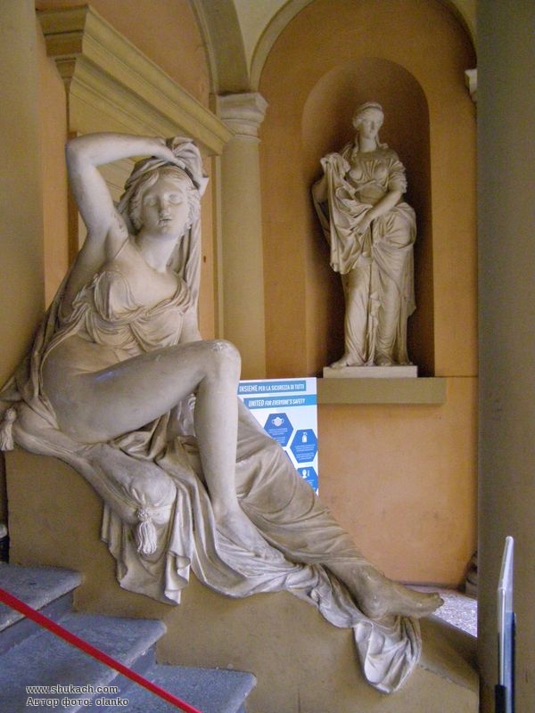 На першому поверсі знаходиться кімната, розписана, ймовірно, фресками Філіппо Педріні, що зображує сцени, присвячені Славі і людському генію, а також фігури Імеро, Піндаро, Гесіода і Демокріта. Дві кімнати оформлені в стилі шинуазрі Давіде Занотті. Інші кімнати містять декорації та картини Джованні Баттіста Фруллі, Луїджі Бусатті, Антоніо Басолі, Гаетано Капонері, Міноцці Фламініо, Вінченцо Мартінеллі та інших художників. Особливу цінність представляють дві кімнати на першому поверсі, неокласична Sala dello Zodiaco, з фресками, ймовірно, Антоніо Басолі, і Зимовий сад (також відомий як кімната «Boschereccia»), «дерево», намальоване Родольфо Фантуцці.