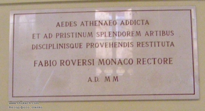 Встановлена у вестибюлі школи політичних наук Болонського університету у 2000 році на честь ректора Болонського університету (1985-2000) академіка Фабіо Альберто Роверсі Монако.