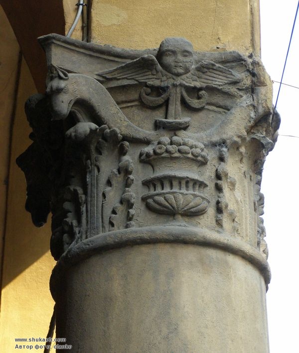 Текст: «Великому Богу Массімо. Доменіко Комеллі, колегіальний доктор з обох юридичних наук, лектор і видатний юрист, у рік Господній 1663 заснував цей коледж Комеллі для правильного навчання громадян Болоньї, визначивши трьох спадкоємців: сестру Баттісту, абатису монастиря Сан-Бернардіно, племінника своєї сестри Паоло Антоніо Таруффі та свого рідного сина Лудовіко Комеллі, і залишив управління назавжди своїм наступникам».