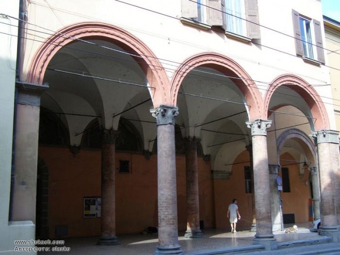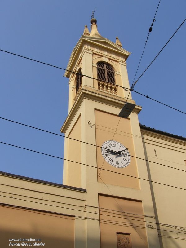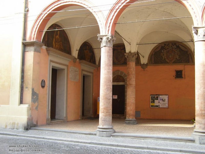Квадрипортик перед входом був побудований волею Антона Галеаццо Бентівольо наприкінці п'ятнадцятого століття. Разом із профранцузьким урядовим родичом були відновлені і релігійні урочистості, включаючи Свято прикрас, яке відновилося в 1826 році в парафіях Санта-Марія-Маджоре та Сан-Джуліано.