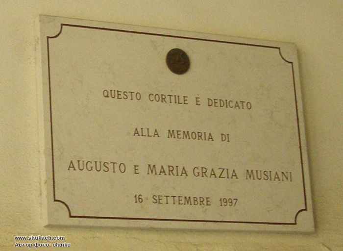 Встановлена 16 вересня 1997 року на честь Аугусто і Марії Граціа Мусіані, яким присвячений цей дворик.