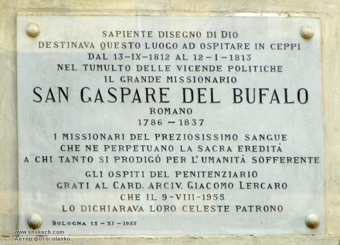 м. Болонья. Меморіальна дошка святому Гаспаре дель Буфало.