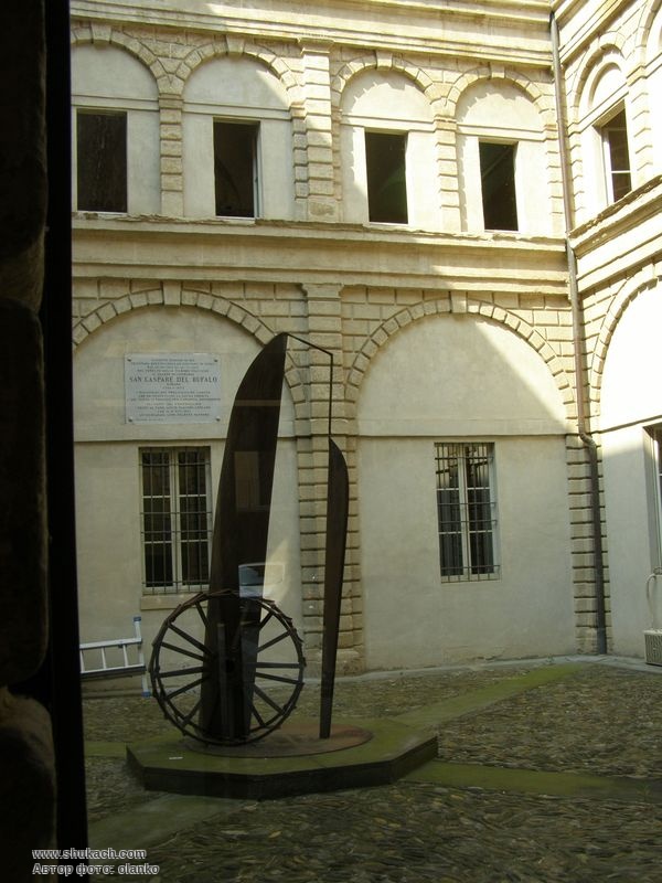 Дошка білого мармуру встановлена на внутрішньому подвір’ї колишнього монастиря Сан-Джованні на горі на честь священика Гаспаре дель Буфало. Він відмовився принести присягу Наполеону і був за це ув’язнений в колишньому монастирі, перетвореному на в’язницю. Канонізований у 1954 році.