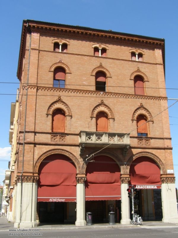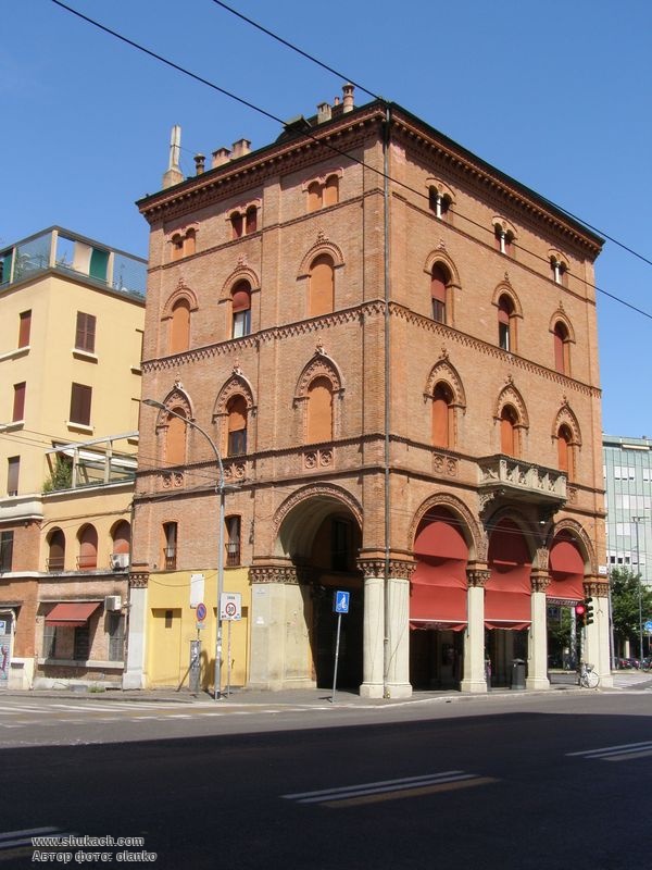 Неоренесансна елегантна та велична будівля. Серед безлічі будівель, що виникли в Болоньї на початку 1900-х років, заново запропонували стиль болонського ренесансу (з майже повним використанням цегли та теракотових прикрас), це здавалося б найбільш вдалим, можливо тому, що воно найкраще виділяється на величезному просторі площа Порту -Сан-Феліче, на яку він виходить вільно та ізольовано. Крім цього, зображення демонструють чудову красу деталей, незалежно від логістичних факторів.