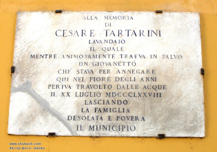 Встановлена на честь прача Чезаре Тартаріні, який 20 липня 1878 року без вагань кинувся у води каналу ді Рено, щоби врятувати двох дітей. Він врятував першу дитину і повернувся у воду для рятування другої. Але, знесилений, втонув сам.