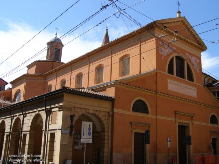 Велика церква, шість залів завдовжки з кремезними прямокутними блідими стовпами, з базами з блідого мармуру на смугастих монохромних мармурових постаментах — нерідкісне поєднання в Болоньї. Мистецтво 18 століття в деяких каплицях, але вони здебільшого містять більш сучасні скульптури. Гарне м'яке барокове панно Благовіщення у другій каплиці праворуч. Гарні вітражі в люнетах над входом і по обидві сторони апсиди, дві останні з «П’єти » та «Таємної вечері». Статуї 19 ст. роботи А. Бертеллі і картини О. Самаккіні, Б. Дженнарі, Ф. Педріні, Дж. Варотті, М. А. Франческіні, А. Гвардассоні. У ризниці є фреска Ліппо ді Далмазіо з кінця 14 століття та теракотова П'єта Анджело Піо (бл. 1730).