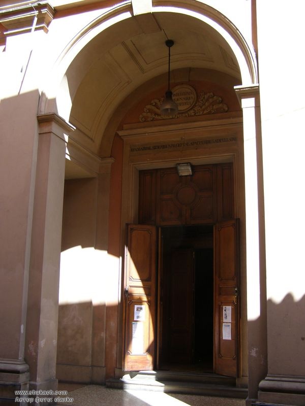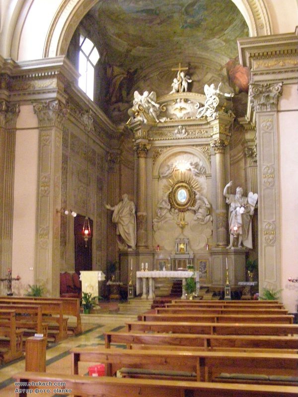В 1320 тут розташовувалась каплиця Санта-Марія-делле-Лауді. Будівлю було перебудовано 1603 року; фасад дев'ятнадцятого століття. Усередині - картини Л. Спада (бл. 1605), Л. Массарі (бл.1605), Г. Ф. Гессі (бл.1612); головна капела прикрашена Г. Г. Даль Соле і Т. Альдровандіні (1692), ліпнина Г. Мацца; Орган Траері, датований 1668 роком, має велику цінність.