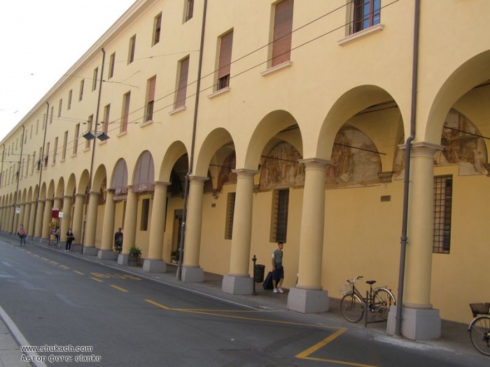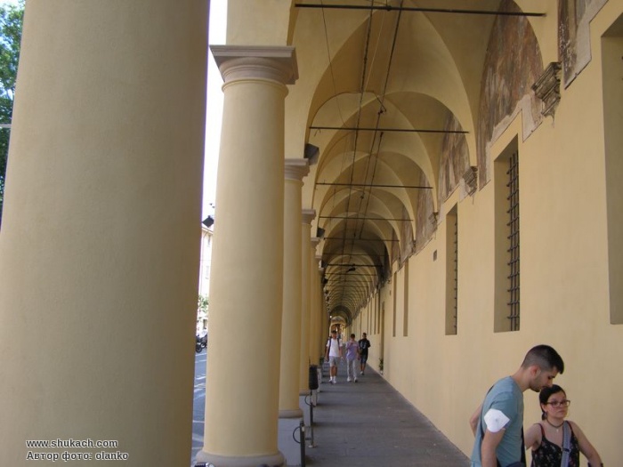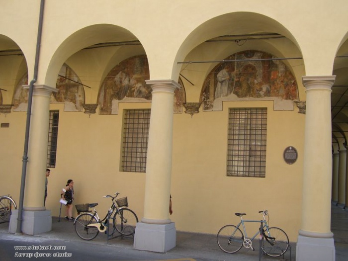 Від будівлі, відновленої в 1926 р., збереглися різні частини та монастир 1460 р. Зовнішній портик, завершений у 1646 р., зберігає люнети, що зображують епізоди з життя святого Антонія Падуанського роботи А. Тіаріні, А. М. Колонна, Г. М. Тамбуріні, П. Дезані, Ф. Джессі, Е. Руджері та інших живописців XVII ст.