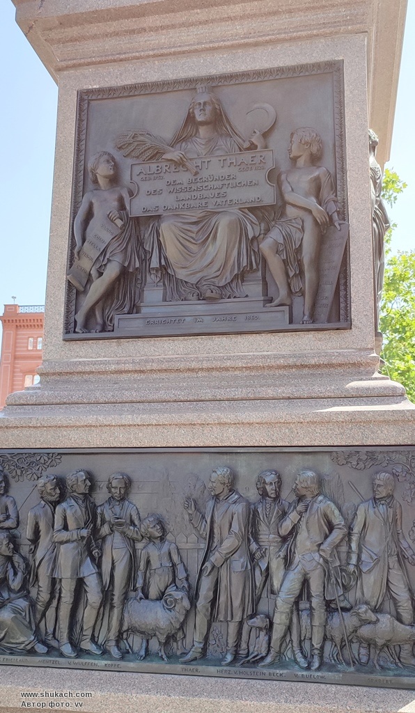 Статуя була відкрита 5 листопада 1860 року. Бронзова скульптура висотою близько трьох метрів зображує прусського реформатора сільського господарства в сучасному одязі. Його права рука піднята в лекційному жесті, ліва рука спирається на плуг.