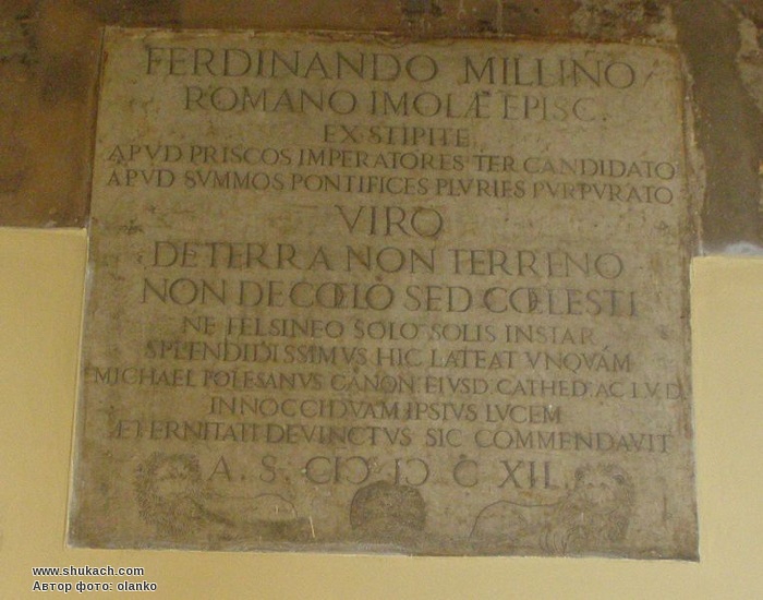 Встановлена у 1612 році на стіні колишнього монастиря Сан-Франческо на честь єпископа Фердинандо Мілліні.