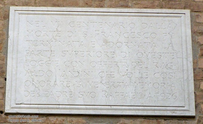 Встановлена у 1926 році в пам'ять реставрації частини монастиря, проведеного на кошти Альдо Ландіні з метою вшанування його батька Рафаелле.