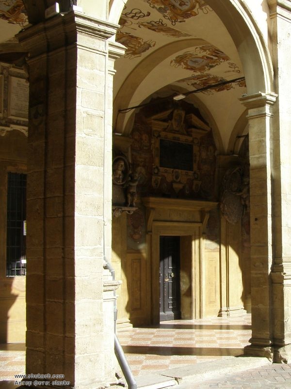 Мармурове погруддя зі скульптурами янголів і дошкою встановлене у приміщенні Архігімназії, на північній стороні нижньої лоджії, на честь видатного лікаря 17-го століття Алессандро Гвіччардіні. Доктор логіки і медицини, він працював хірургом у лікарні S. Maria della Vita в Болоньї.