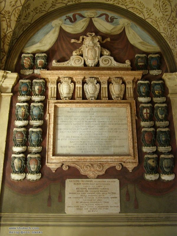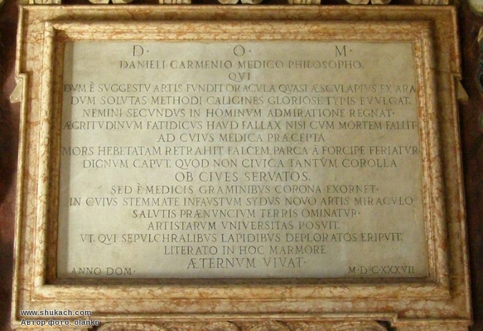 Отримавши в Болоньї освіту з філософії і медицини, Даніелі Кармені викладав обидві ці дисципліни у Архігімназії. Дошка білого мармуру встановлена на другому поверсі лоджії Архігімназії у 1637 році.