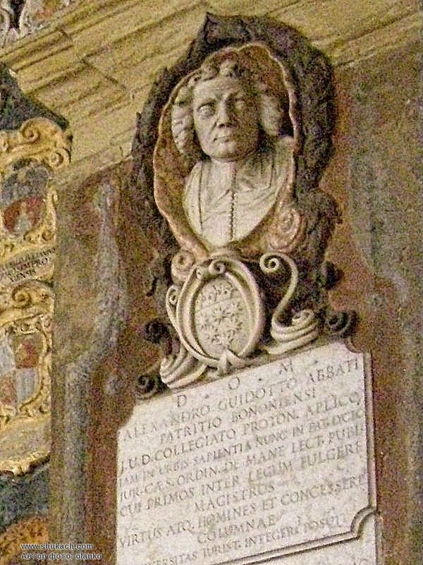 Дворянин, абат, доктор канонічного та цивільного права, Алессандро Гвідотті викладав в Archiginnasio Болоньї з 1656 по 1694 рік. Погруддя з меморіальною дошкою встановлені на першому поверсі лоджії Архігімназії.