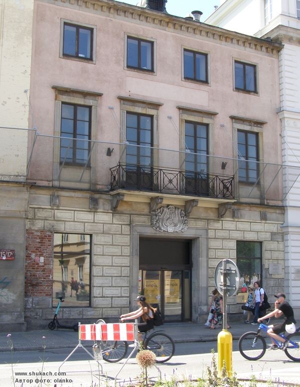 У цьому будинку у 1920-1921 роках була розташована перша амбасада незалежної Грузії. Текст на польській, грузинській і англійській мовах.