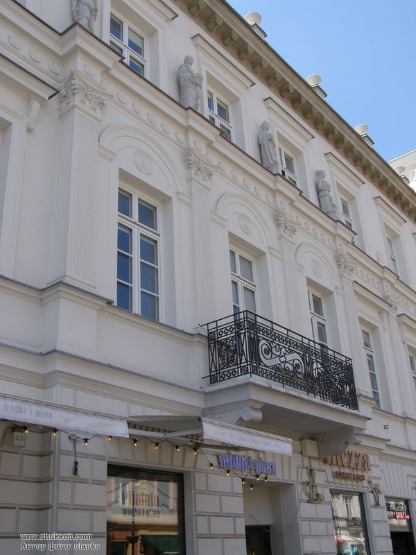 У 1848 році будинок придбав Владислав Пусловський і доручив його реконструкцію архітектору Генрику Марконі. Архітектор надбудував один поверх, три прибудови, балкони та парапет балюстради. Фасад прикрасив коринфськими пілястрами. У 1851 році були розміщені скульптури із зображенням муз: Кліо, Уранії, Ерато та Талії, виконані Павлом Малінським.