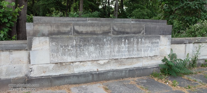 У 1938 році пам'ятник Роону разом із пам'ятниками Мольтке , Бісмарку та колоною Перемоги було перенесено з його початкового місця на північному краю Кенігсплац , на нинішнє місці - на північному краю Великої Зірки . Статую оточує декоративна стіна з таким написом: «АЛЬБРЕХТ ГРАФ РООНСЬКИЙ ФЕЛЬДМАРШАЛ І ВІЙСЬКОВИЙ МІНІСТР / 30.04.1803 р. EST. 23.02.1879 р. ПРОВЕДЕННЯМ АРМІЙСЬКОЇ РЕФОРМИ СТВОРИВ УМОВИ ПЕРЕМОГ / У ВІЙНАХ 1864 р., 1866 р.,1870-71 р.».