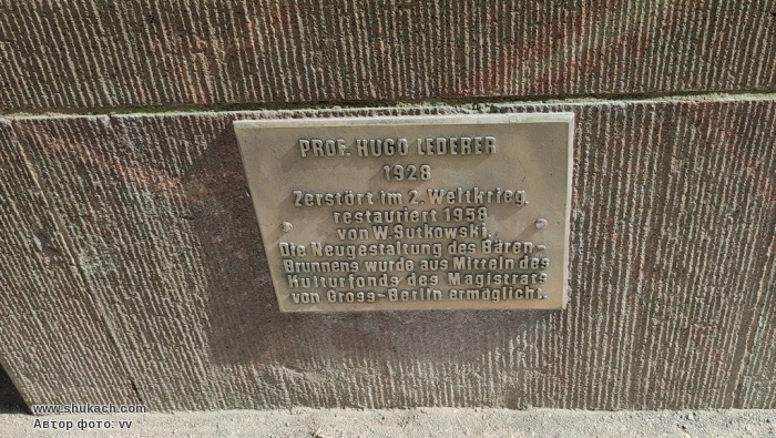 У 1920-х роках Хуго Ледерер зробив цей декоративний фонтан із червоного лавового туфу , який був встановлений на площі Вердершер Маркт у 1928 році. Кам’яний витвір мистецтва було знищено під час боїв наприкінці Другої світової війни . З нагоди реконструкції центру міста Берлінським магістратом скульптору Вальтеру Сутковському було доручено відтворити фонтан за історичними моделями. Повна копія фонтанної системи була встановлена на старому місці в 1958 році і введена в експлуатацію. Меморіальна дошка біля основи фонтану повідомляє про історію.