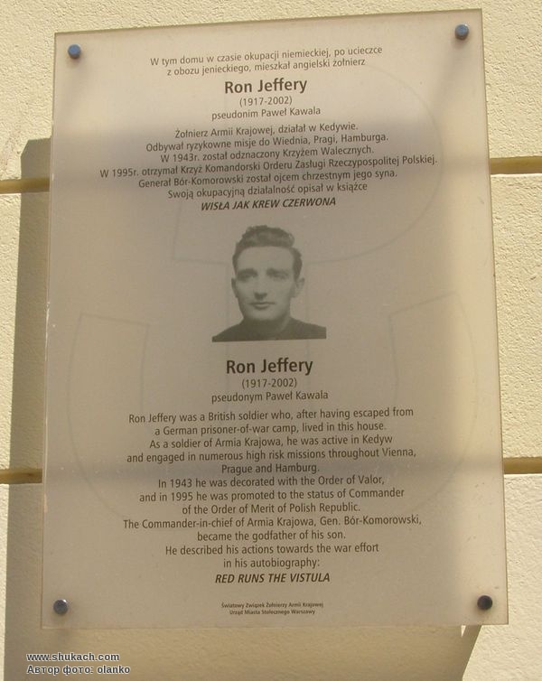 Встановлена на честь британського воїна Рона Джеффері. У 1940 він потрапив у німецький полон і утримувався в таборі на території Польщі. Втікши з полону, він приєднався до польських підпільників у Варшаві. Він приймав участь у бойових акціях і виконував спеціальні завдання. Саме він привіз у Лондон документи про розстріл поляків у Катині.