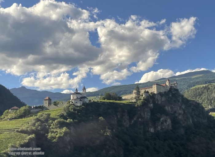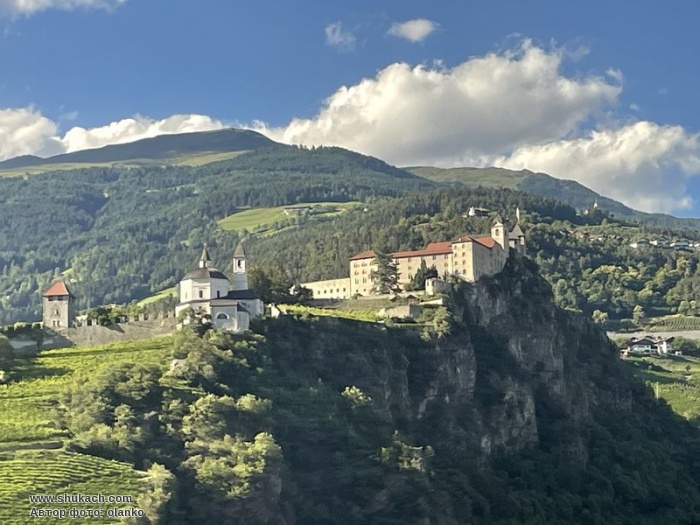 Монастир Сабіона — «Kloster Säben» німецькою, «Monastero di Sabiona» італійською — височіє на вражаючій скелі, відомій як «Тірольський Акрополь». Сабіона є духовною колискою всього Тіролю і є однією з найдавніших християнських пам'яток у регіоні та в Альпах. Комплекс розташований серед виноградників і лісу, приблизно на 200 метрів над містом Кьюза. Ця територія була заселена ще в період неоліту. Пізніше замість монастиря було пізньоримське поселення. Крім того, археологічні знахідки свідчать, що з цього місця християнська віра поширювалася по всьому Південному Тіролю. Існуюча церква Святого Хреста, яку можна відвідати сьогодні, була резиденцією єпископства Сабіони приблизно до 1000 року нашої ери, коли резиденцію було перенесено до Брессаноне.