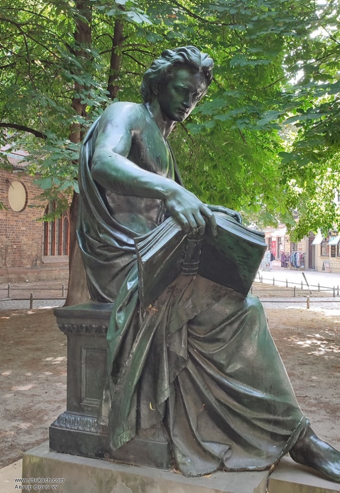 На Миколайкірхплац розташована бронзова скульптура Альберта Вольфа «Алегорія науки» . Вона була частиною створеної у 1860-1871 роках та знищеної у воєнні часи кінної статуї Фрідріха Вільгельма III.