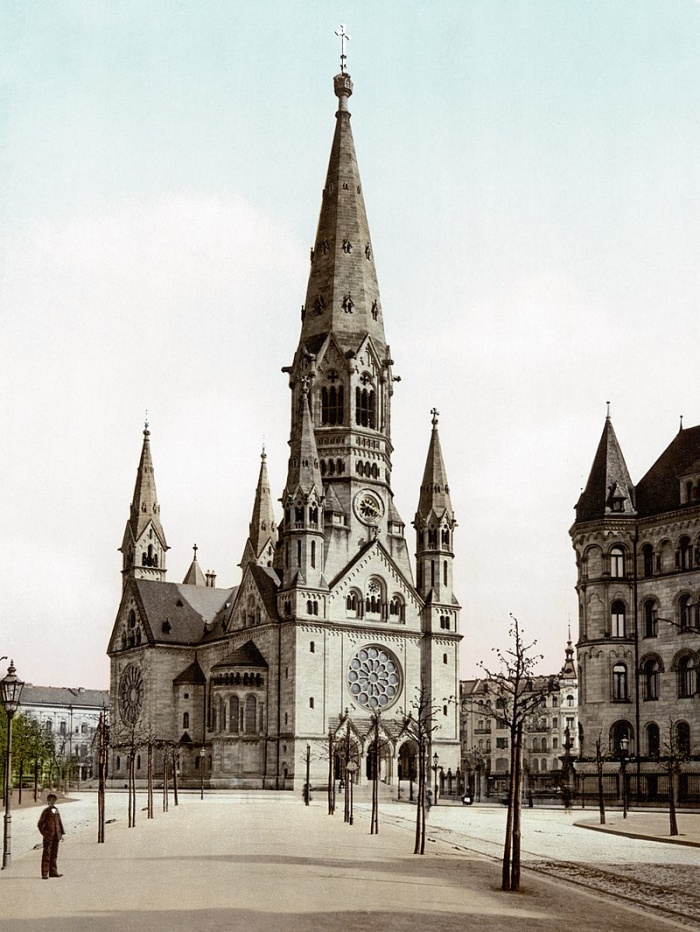Побудову церкви замовив імператор Вільгельм II на честь свого діда Вільгельма I. Перший камінь будівлі був закладений 22 березня 1891 року. Меморіальна церква була споруджена за проектом архітектора Франца Швехтена в 1891—1895 роках. Церква в рейнському неороманському стилі мала значні розміри і довгий час вона була найвищою церквою Берліна. Увінчана шпилем висотою 113 метрів, вона могла вмістити 2000 осіб. Всередині церкву прикрашали 2740 м² мозаїки, які розповідали про життя і роботу імператора Вільгельма І. Церква була освячена 1 вересня 1895 року.