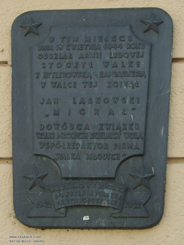 м. Варшава. Меморіальна дошка Яну Ласковському.