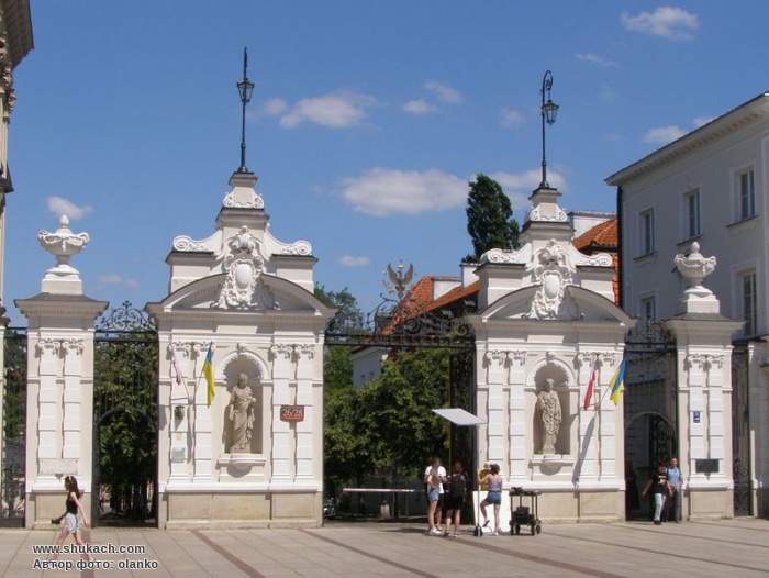 Сучасні ворота в стилі необароко були спроектовані близько 1900 року Стефаном Шиллером. Їх ввели в експлуатацію в 1911 році, тоді ж університет отримав вулицю, що веде до кампусу, під назвою "Uniwersytecka". До 1916 року ворота увінчувала літера «А», яка була тодішнім символом університету, що відсилає до імені його засновника – царя Олександра І. За часів Польської Народної Республіки на воротах містився орел без корони, який був тодішнім державним гербом. Сьогодні, як і в 1916-1944 роках, на воротах зображено коронований орел в оточенні п'яти зірок, який є офіційною емблемою Варшавського університету.