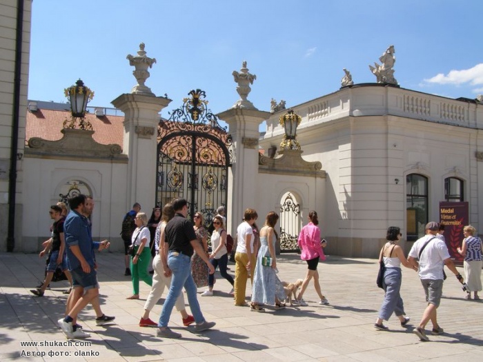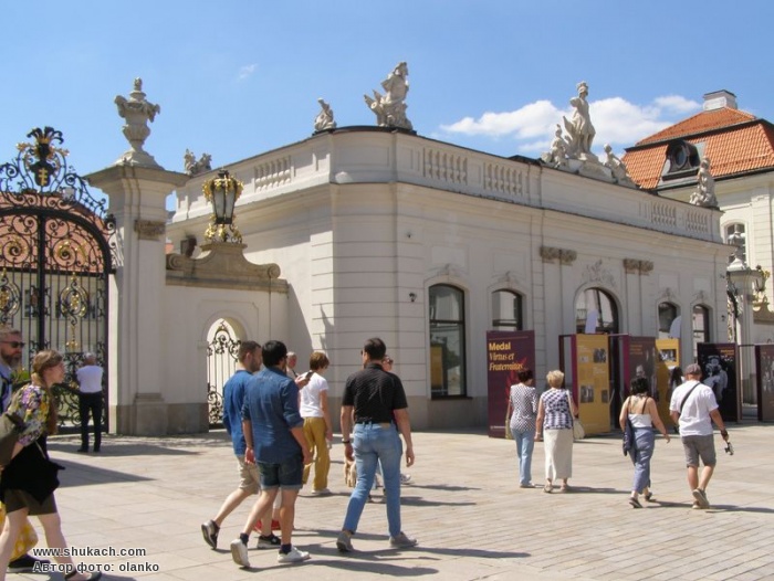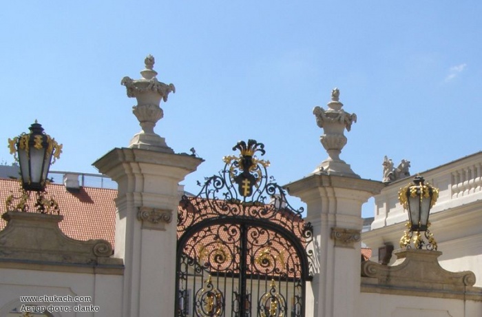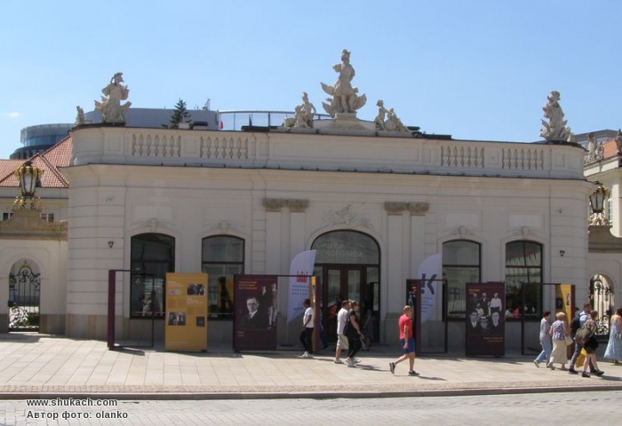 Будівля гауптвахти зведена 1765-1766 роках, можливо, за проектом Єфрема Шрегера (інші джерела вказують 1763 р.) зі скульптурами Себастьяна Зейсля і брамами з кожного боку. У 1886 році палац викупив граф Юзеф Потоцький, який почав реставрацію будівлі, в тому числі встановив на воротах скульптури (за проектом Леандро Марконі). Реставраційними роботами керував Владислав Марконі.