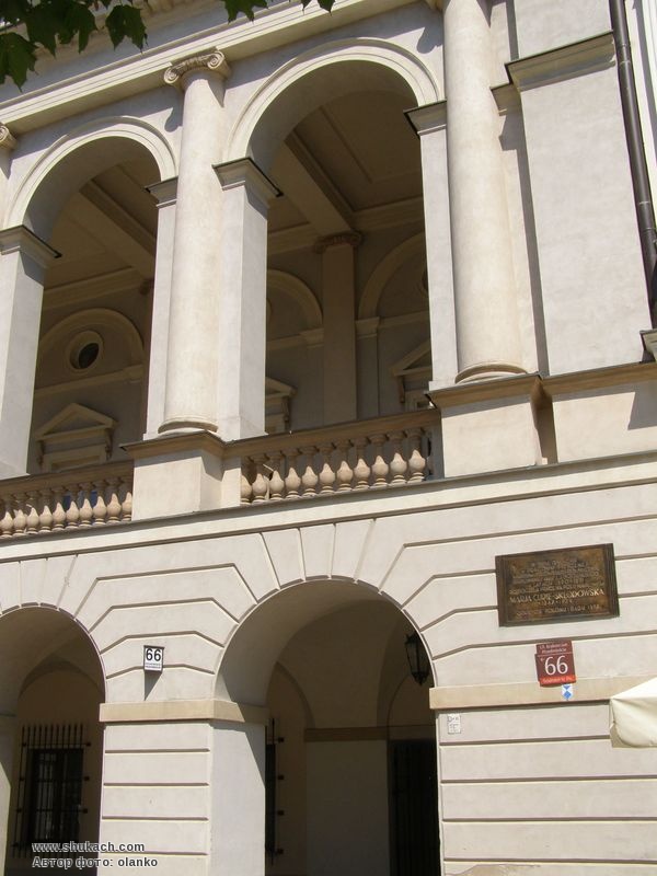 Будинок Odwach (в перекладі «вартовий») був зведений у 1818-1821 роках на місці флігеля монастиря бернардинів. До 1860 року тут розташовувався Військовий штаб міста. У 1881 році в будівлі розміщувався Музей промисловості і сільського господарства. Марія Кюрі-Склодовська розпочала свою наукову роботу у фізичній лабораторії у 1890-1891 рр. під керівництвом Я.Я.Богуцького. У 1906 році тут розміщувалося Польське національне товариство. Під час війни будівля була спалена, після війни відбудована. Нині в будівлі розташована Центральна сільськогосподарська бібліотека.