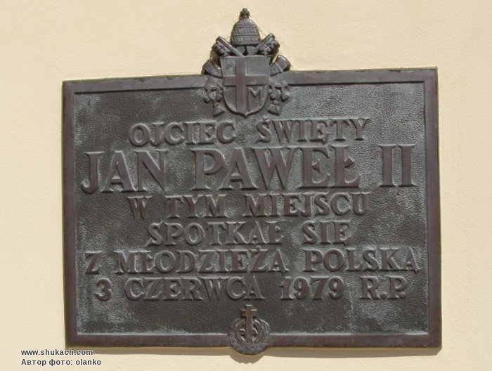 Бронзова дошка на фасаді костелу святої Анни відмічає місце, де 3 червня 1979 року папа римський Іоанн Павло ІІ спілкувався з польською молоддю.