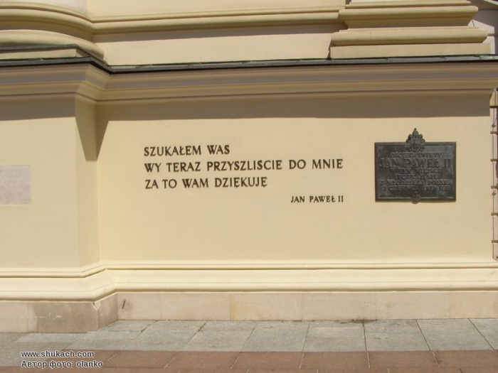 м. Варшава. Меморіальна дошка папі Іоанну Павлу ІІ на костелі св. Анни.