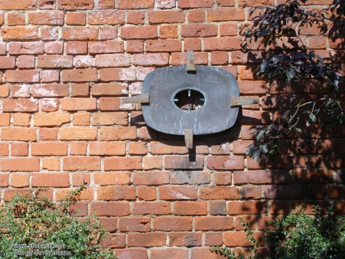 В центрі дошки був фігурний елемент кольорового скла, пізніше вкрадений вандалами.