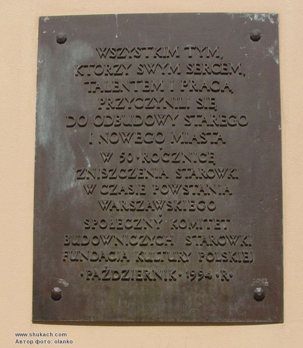 Бронзова дошка встановлена у жовтні 1994 року, у 50-ту річницю зруйнування Варшави внаслідок повстання 1944 року.