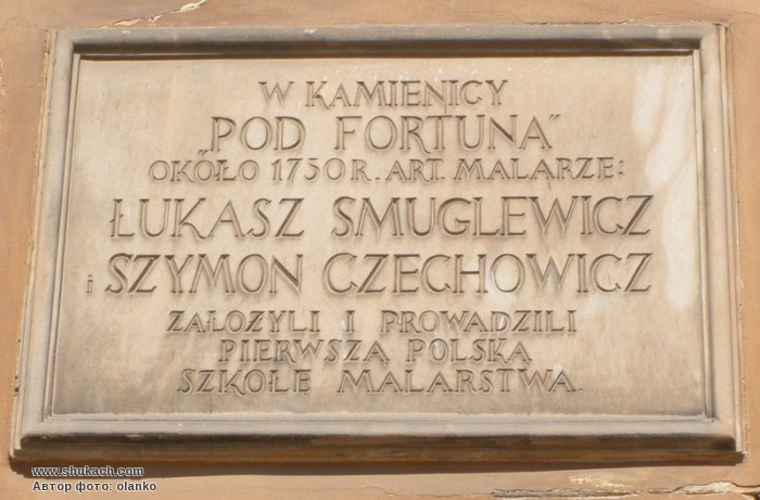 У кам’яниці «Під фортуною» жили і працювали в середині вісімнадцятого століття два відомих художника: Шимон Чехович і Лукаш Смуглевич. Близько 1750 року вони заснували першу живописну школу у Варшаві, про що нагадує нам меморіальна дошка, розміщена на фронтоні.