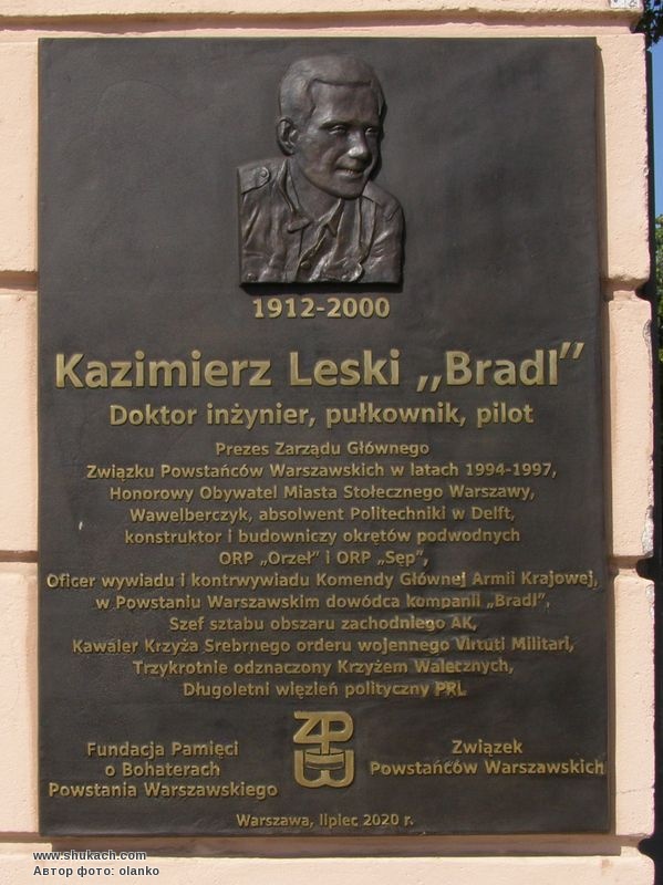 Встановлена на честь воїна і розвідника Казимежа Леського. Його називали польським Джеймсом Бондом. Казимир Леський «Бредль» (1912–2000), випускник Делфтського технологічного університету, до війни був інженером-проектувальником підводних човнів ОВП «Оржел» та ОВП «Sęp», а потім закінчив авіаційну школу. Після початку війни він був льотчиком, але його літак був збитий Червоною Армією. Він втік з радянського полону і зумів потрапити до Варшави, де вступив в підпільну розвідувальну організацію «Мушкетери». Потім став розвідником і контррозвідником штабу АК. Він пробирався через окуповану Європу в німецькій формі, викрадаючи таємниці Третього рейху. Видаючи себе за генерала вермахту Юліуса фон Гальмана, він подорожував по окупованій Гітлером Європі і виконував розвідувальні завдання польського підпілля, здобувши, між іншим, плани укріплення однієї з ділянок Атлантичного валу.