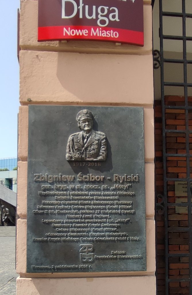Встановлена на честь військового діяча Збігнева Сцибор-Рильського, члена-засновника, а в 1989-1994 і 1997-2018 роках президента Головної ради Асоціації варшавських повстанців. Бронзова дошка на фасаді будівлі Асоціації урочисто відкрита 2 жовтня 2018 року.