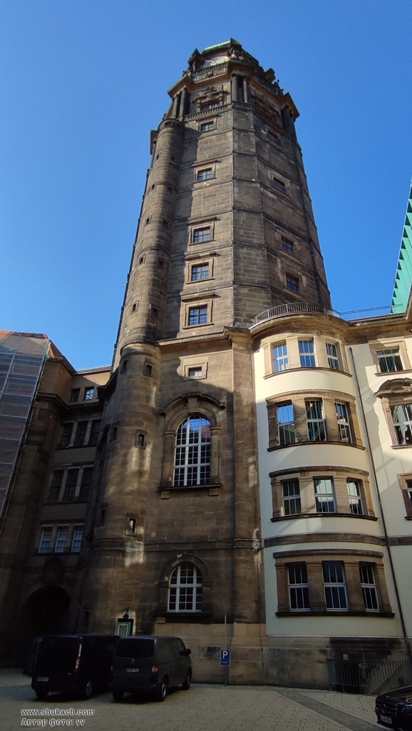 Ратуша з її приблизно 100-метровою вежею є частиною знаменитого силуету Дрездена. Будівля була побудована з 1905 по 1910 роки в стилі неоренесансу. Архітектуру будівлі доповнюють елементи стилю модерн і бароко. Однією з архітектурних родзинок внутрішнього оформлення є репрезентативні сходи до бальних залів ратуші. Майже п’ятиметрову позолочену скульптуру на вершині вежі, відому як «Ратхаусман», видно здалеку. На висоті 68 метрів знаходиться оглядовий майданчик, з якого відкривається фантастичний вид на Дрезден і його околиці.