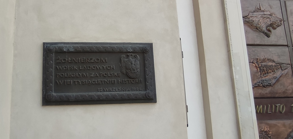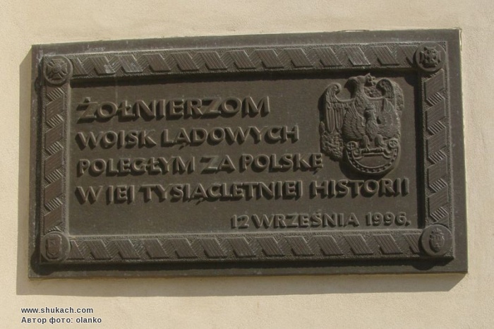 Текст: «Воїнам сухопутних військ, полеглим за Польщу у її тисячолітній історії».
