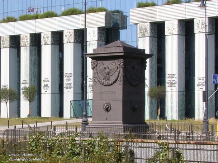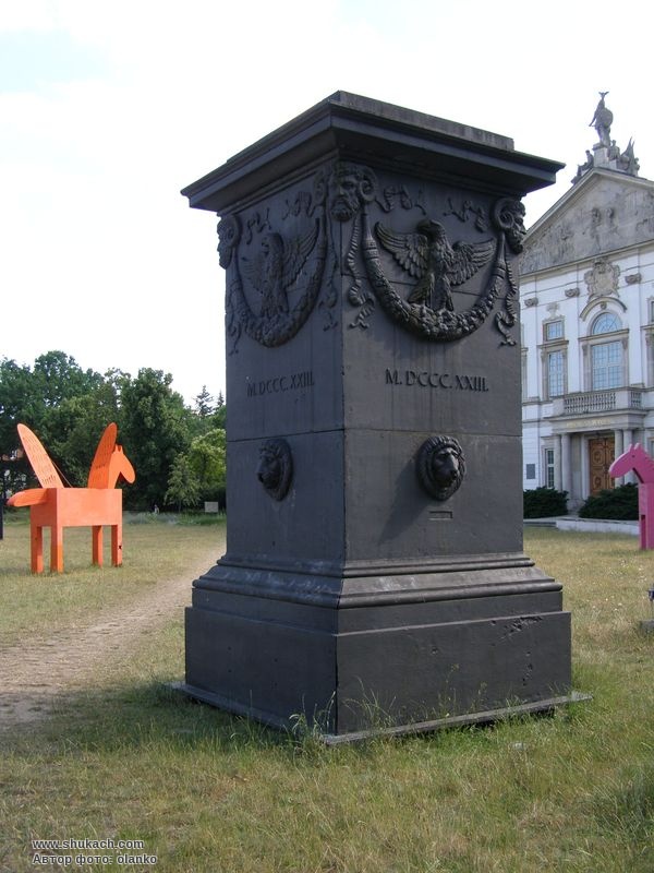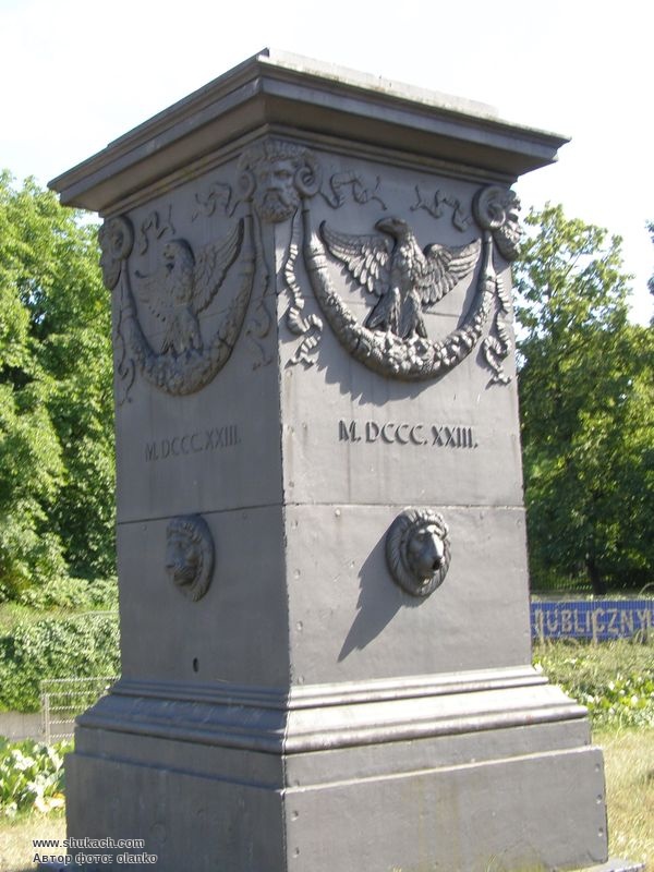 У 1824 році на площі було зведено два чавунних кожуха свердловин, спроектованих Крістіаном Пьотром Айгнером і виготовлених варшавським заводом Томаша Еванса і Юзефа Морріса. Вони замінили більш ранні об'єкти у вигляді обелісків на постаментах. Архітектор надав їм форму стародавніх вівтарів. По кутах він ставив голови козлорогого Лорда, а на бічних стінах орлів і фестонів з датою початку робіт (MDCCCXXIII).