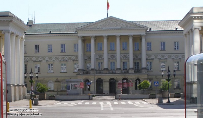 Зведений на початку сімнадцятого століття. Це колишній палац родин Лещинських, Потоцьких і Зєлінських, який у 1823-1825 роках був ґрунтовно перебудований Антоніо Корацці для потреб уряду. Відновлений на початку двадцятих років минулого століття Мар'яном Лалевичем, в ньому розміщувалося Міністерство казначейства.