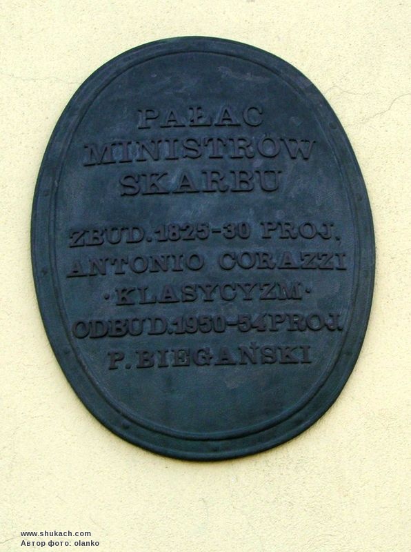 Був зведений в 1825-1830 роках архітектором Антоніо Корацці. Будівля містить залишки колишнього палацу вісімнадцятого століття родин Вишневецьких та Огінських. Він був заснований як резиденція міністра Ксаверія Друцького-Любецького. Палац був невід'ємно пов'язаний з будівлею Фондової біржі і Банку ліворуч і будівлею Урядової комісії праворуч.