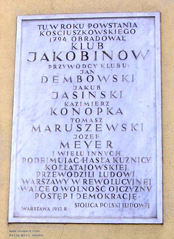Розташована на фасаді палацу міністра фінансів. Вона вшановує пам'ять лідерів якобінського клубу – Яна Дембовського, Якуба Ясінського, Казимира Конопки, Томаша Марушевського та Юзефа Мейєра, які в цій будівлі в 1794 році дискутували під час повстання Костюшка, в якому вони відіграли значну роль.